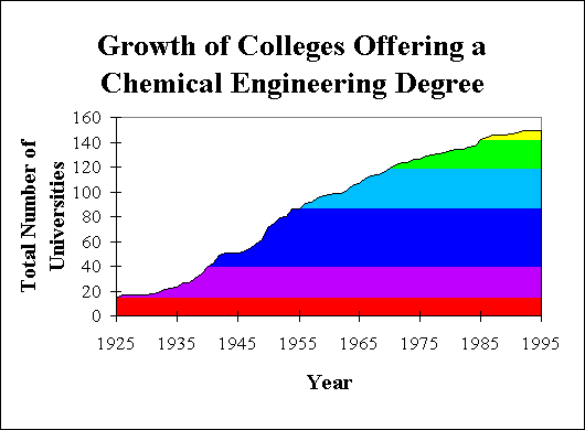 Enormous growth in chemical engineering education was seen in the years just prior to, and the decades following, World War II. Today, this growth has stagnated, and no new programs have been accredited since 1992. Despite the stagnation, many feel there are still too many new chemical engineers graduating (about 5000) each year. It is therefor unlikely that many new University will seek accreditation in chemical engineering.