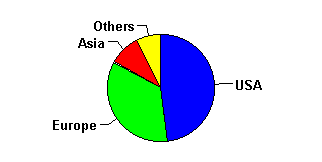 As you can see, a further 35% of banks originate in Europe, Asia accounts for only 7% of the total - this means that competition is as yet by no means as intense here as it is in Europe or the US, and in some countries there may not be any banks as yet operating web sites.