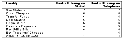 The first is this. The French banks consider it a competitive necessity to offer account banking through Minitel. Almost every bank in France offers at least some basic transactions in this way.