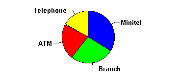 The final point is this. The French public's behaviour over the past 10 years shows that although there is significant demand for on-line delivery, customers do not want that to be the only delivery mechanism. This slide, from a survey last February, shows the proportion of account transactions made through each of four delivery channels. The results here only include those people who have access to a Minitel terminal.