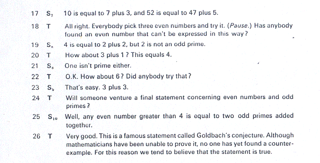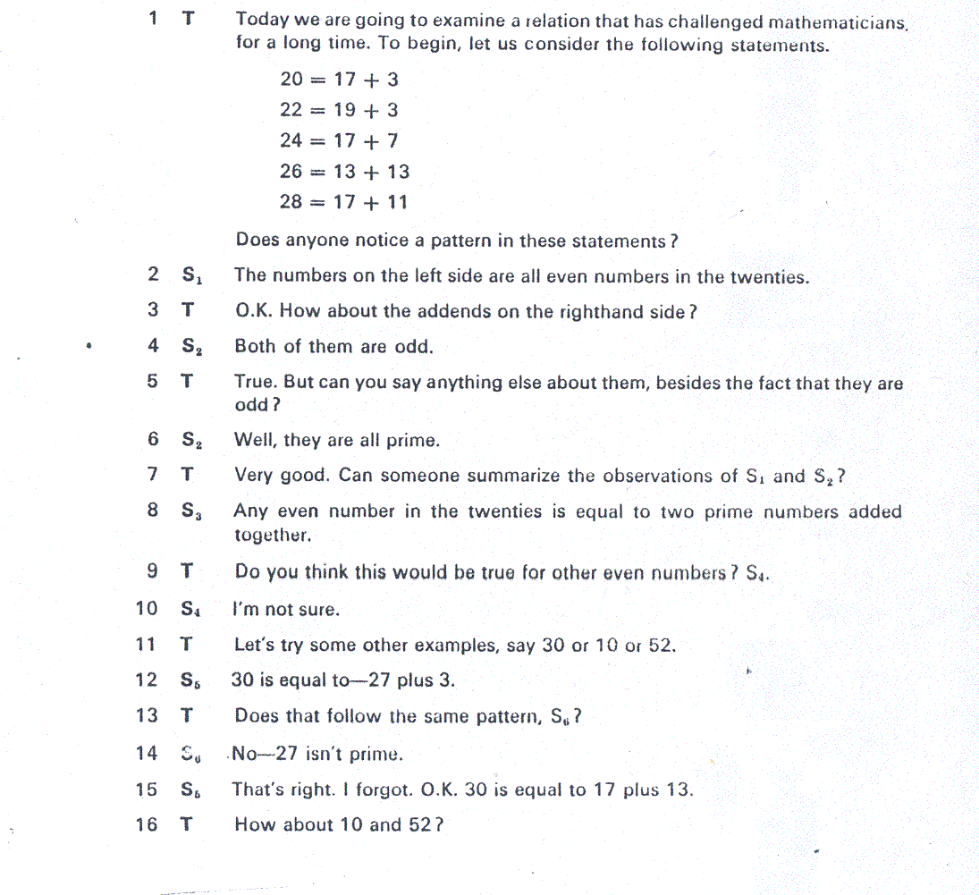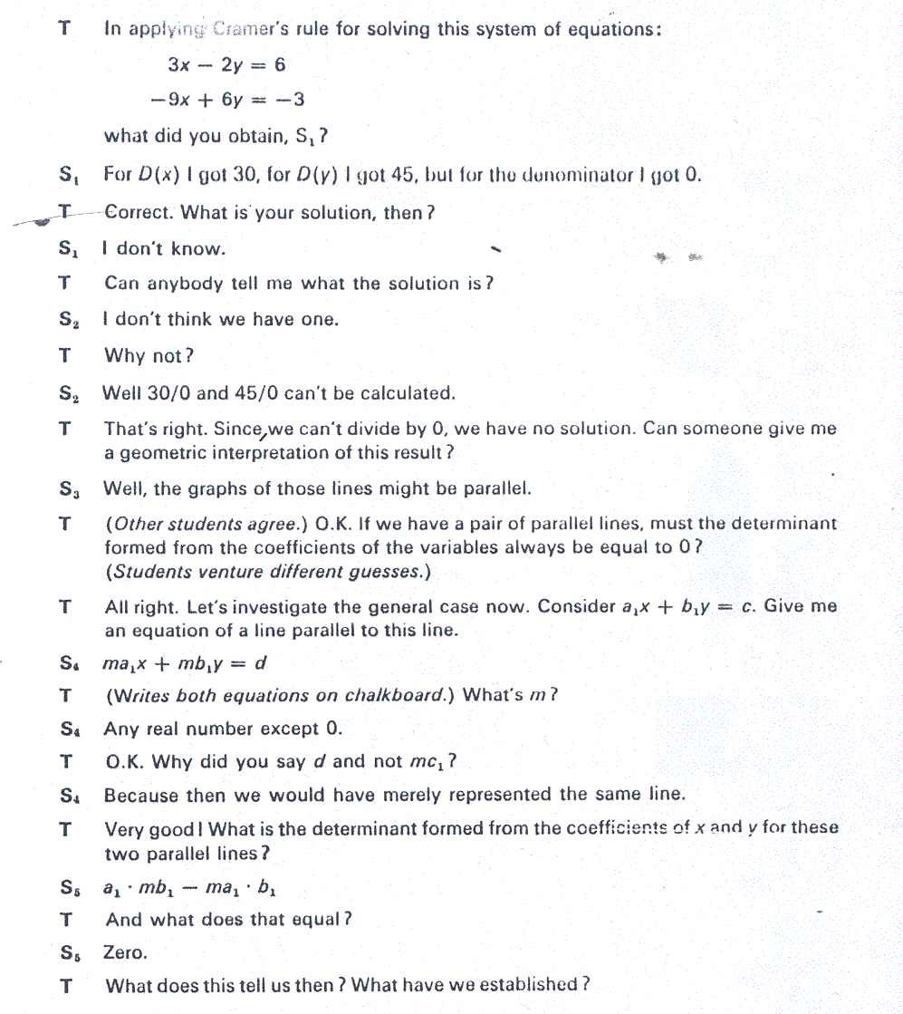 Assume that this following dialogue occurs in a second year algebra class